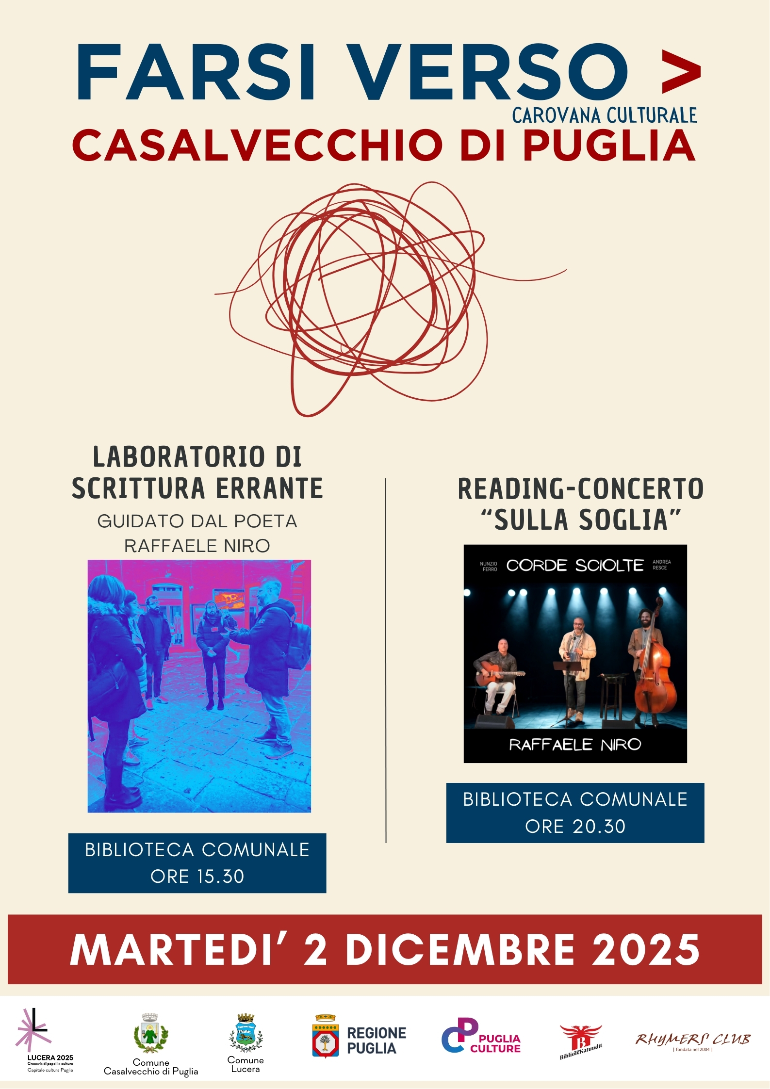 FARSI VERSO > approda a Casalvecchio di Puglia Un borgo che diventa parola, cammino, ascolto. Una comunità che si fa…
